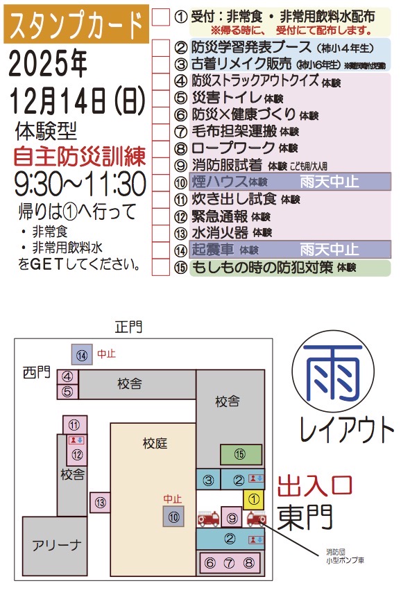 自主防災訓練は下記雨天レイアウトで開催します。